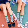 Channel the Summer's hottest trend in our Bowsession Tennis Crew sock for both on and off the court. The bow pattern adds a touch of femininity to your tennis look, while the blue and green color palette is effortlessly chic. Pair with your favorite sneakers for court play, or dress it up with ballet flats for every day wear. Designed with a ribbed ankle for the perfect scrunch and cushioned sole for all your sporty activities. One Size. Recommended fit US W5.5-10.