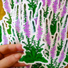 A bright purple, green, and white, weatherproof, vinyl sticker of a foxglove. From an original graphite drawing of a foxglove!