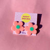 These gorgeous daisy polymer clay stud earrings measure approximately 1.25 inches x 2 inches.
