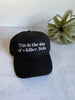 ‘This is the skin of a killer, Bella’ embroidered in white on a black relaxed fit hat. Adjustable slider on the back to adjust fit. Other colors available!