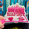 The Hot Girls Read Smut holographic sticker is 3 inches on the longest side.