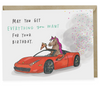 "May you get everything you want for your birthday." Pony, check. Ferrari, check, pizza, check. I mean, what else is there to wish for? A yacht? Now you're just getting greedy.