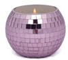 Boogie on into the new year with these hand-crafted glass mirror ball candles inspired by disco! These glistening candles, offered in four shades of color, double as a dazzling piece of home decor. Repurpose the candles into a pencil cup or vase after the wax burns through!