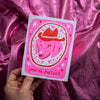 A2 risograph printed card, printed in fluorescent pink and red inks! Packaged in clear sleeve with a lunar blue envelope.