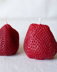 Large Strawberry Beeswax Candles. The set includes 2 variations of the large strawberry seen in the first picture.