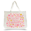 Keep those beautiful cherry blossoms on your mind all year round with our Let Your Dreams Blossom tote bag! It's bigger than your average tote bag and makes a great gift (and gift bag) as well! • Measures 20"W x 15"H X 5"D with gusseted bottom (20" handles) • 100% cotton • Heavy canvas with reinforced stress points to keep from ripping • Designed, printed + packaged in the USA